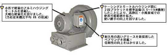 大風(fēng)量タイプで好評をいただいておりますEシリーズにアルミハウジングモートルを搭載。軽量化、性能の使用可能範(fàn)囲を拡大し、さらなる進(jìn)化を遂げたE2シリーズへモデルチェンジ。