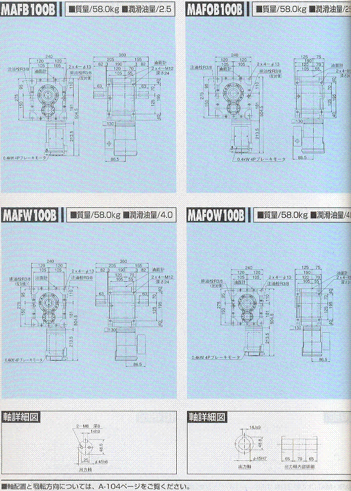 MAF100-B,MAFO100-B(0.4KW)外形尺寸表 1