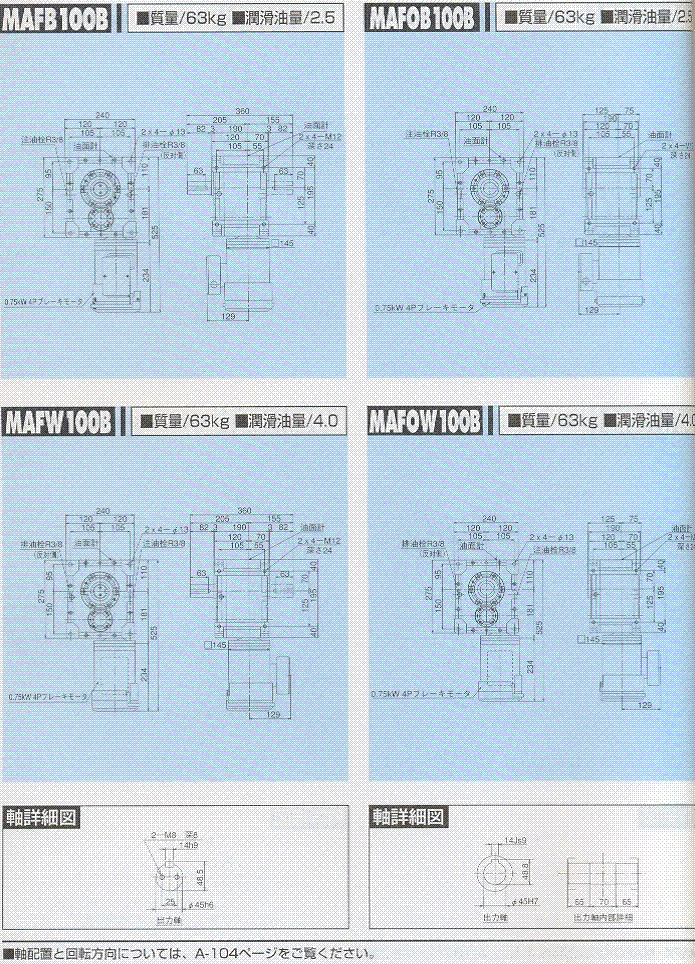 MAF100-B,MAFO100-B(0.75KW)外形尺寸表 1