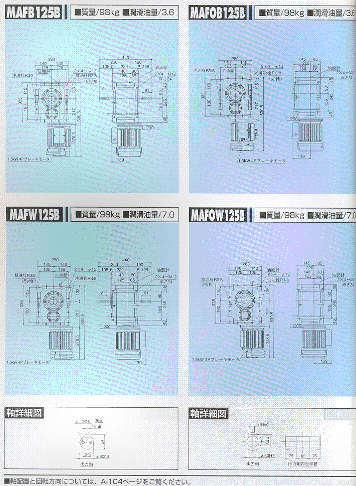 MAF125-B,MAFO125-B(1.5KW)外形尺寸表 1