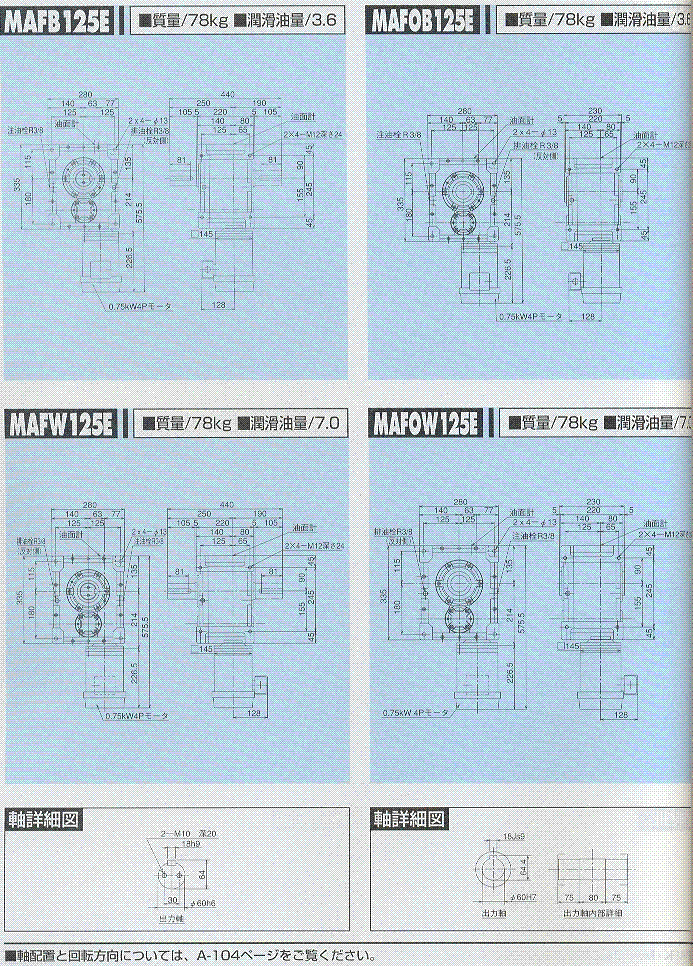 MAF125-E,MAFO125-E外形尺寸表 1(0.75KW)