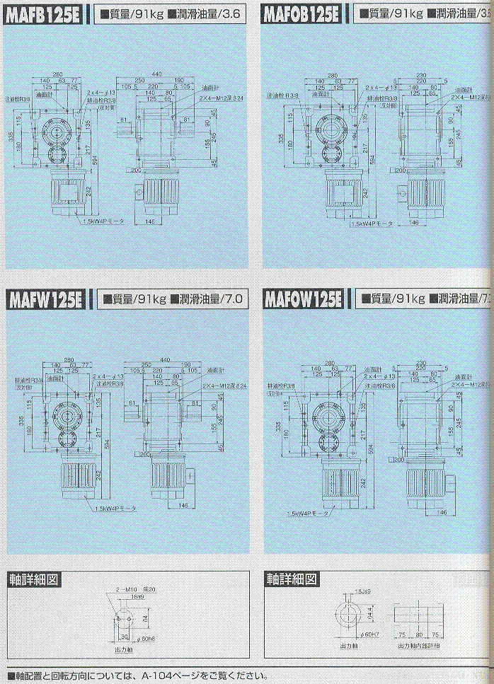 MAF125-E,MAFO125-E外形尺寸表 1(1.5KW)