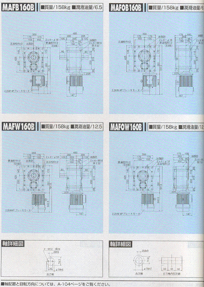 MAF160-B,MAFO160-B(2.2KW)外形尺寸表 1