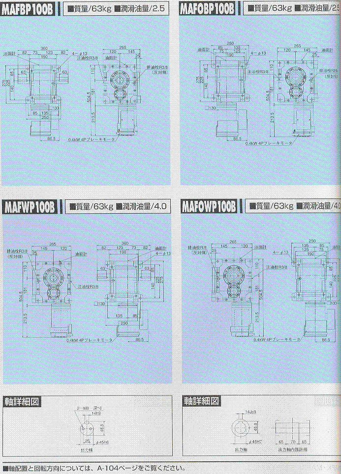 MAFP100-B,MAFOP100-B外形尺寸表(0.4kw)