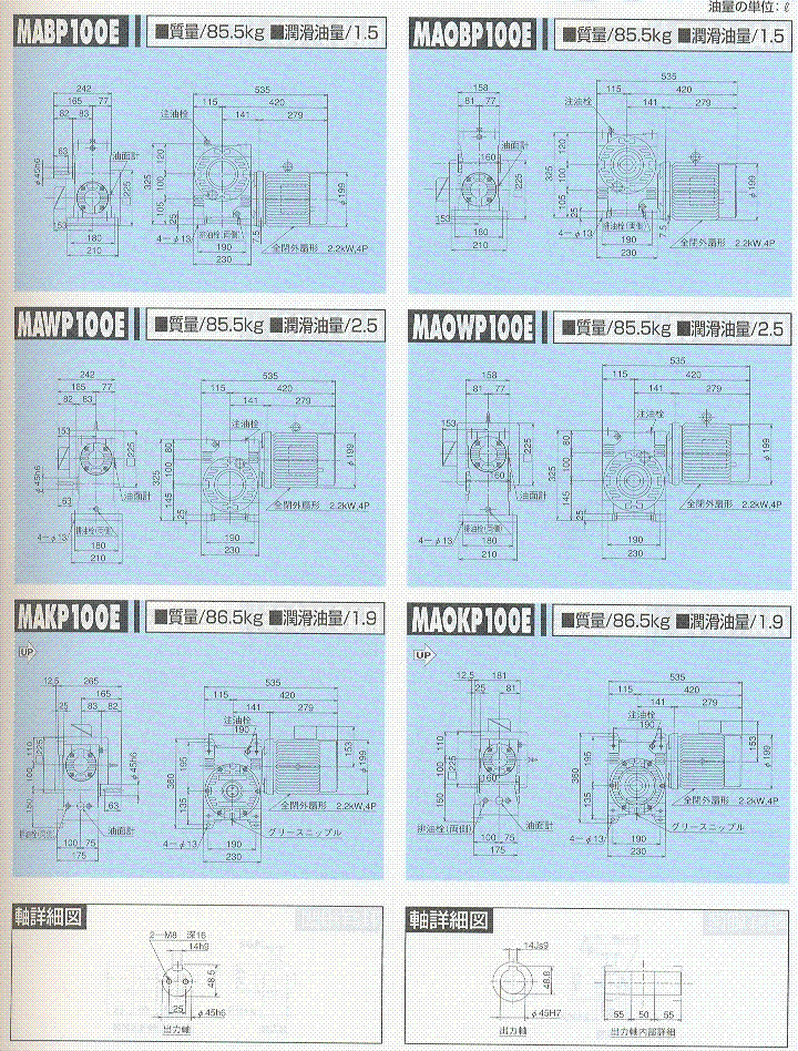 MA100-E,MAO100-E(2.2KW)外形尺寸表 1