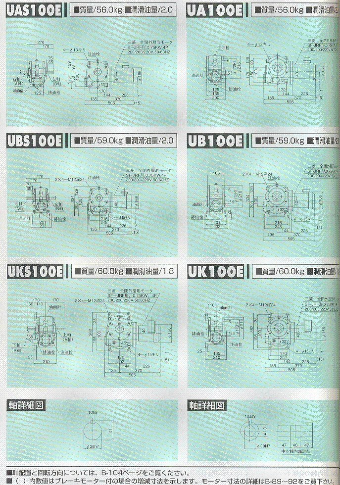 F/U/AF/AOF系列100E(二段式蝸輪減速機)外形尺寸表 1