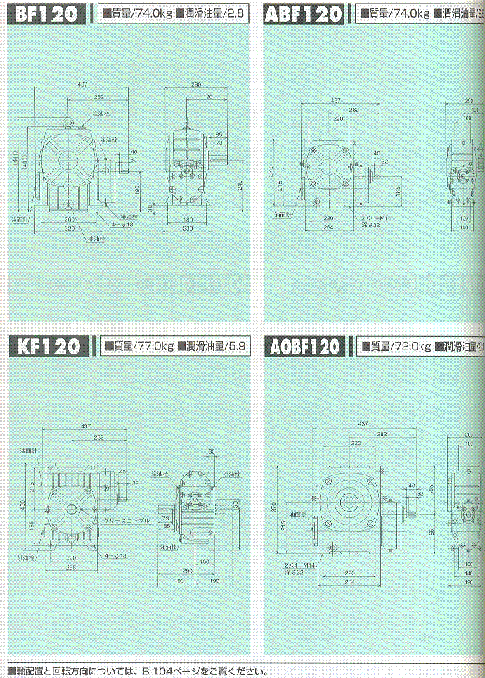 F/U/AF/AOF系列120(二段式蝸輪減速機(jī))外形尺寸表 1
