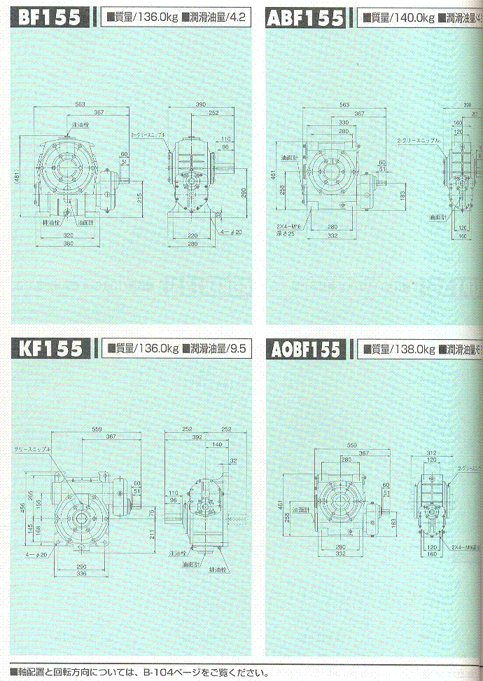 F/U/AF/AOF系列155(二段式蝸輪減速機(jī))外形尺寸表 1