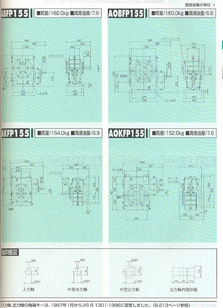 F/U/AF/AOF系列155(二段式蝸輪減速機(jī))外形尺寸表 2