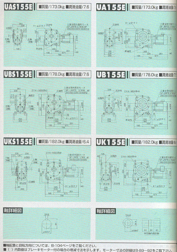 F/U/AF/AOF系列155E(二段式蝸輪減速機(jī))外形尺寸表 1