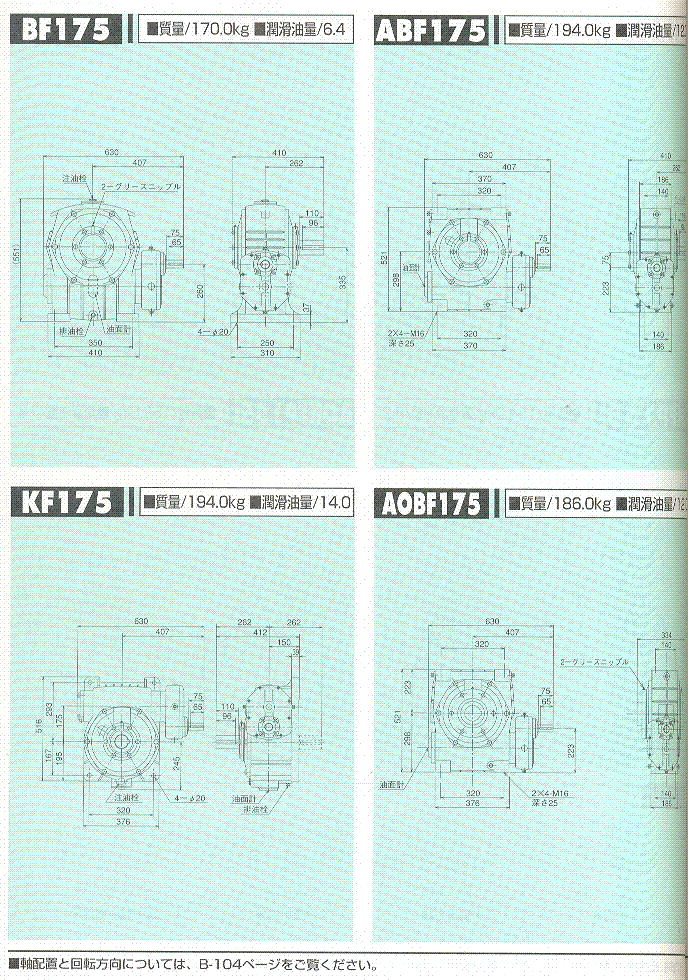 F/U/AF/AOF系列175(二段式蝸輪減速機)外形尺寸表 1