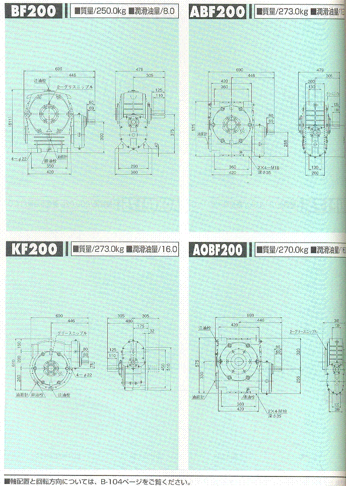F/U/AF/AOF系列200(二段式蝸輪減速機)外形尺寸表 1