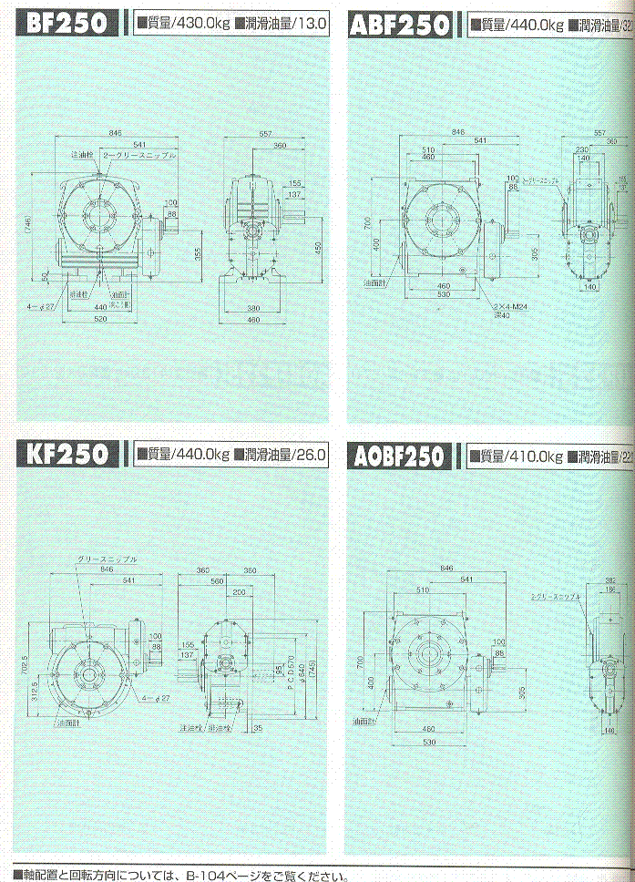 F/U/AF/AOF系列250(二段式蝸輪減速機(jī))外形尺寸表 1