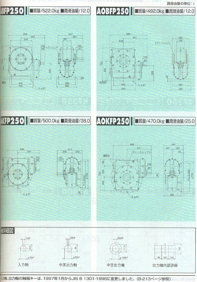 F/U/AF/AOF系列250(二段式蝸輪減速機)外形尺寸表 2