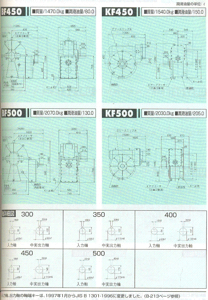 F/U/AF/AOF系列450,500(二段式蝸輪減速機)外形尺寸表