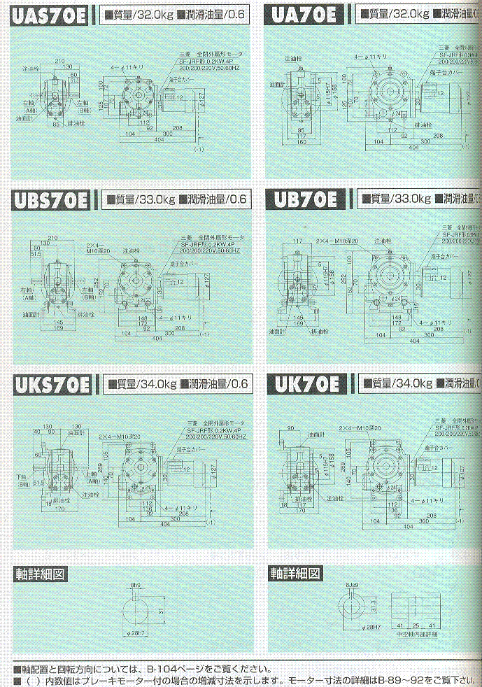 F/U/AF/AOF系列70E(二段式蝸輪減速機)外形尺寸表 1