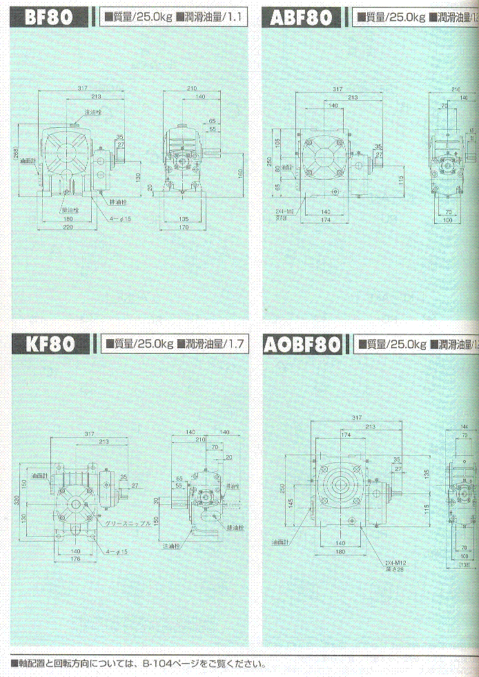 F/U/AF/AOF系列80(二段式蝸輪減速機)外形尺寸表 1