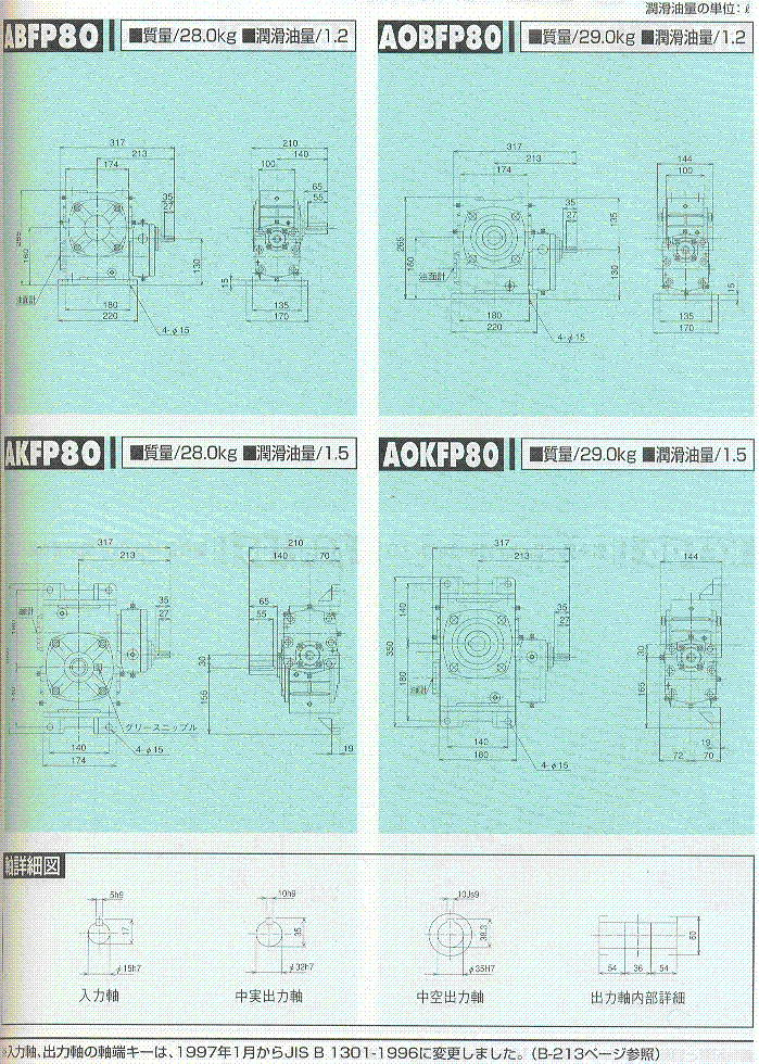 F/U/AF/AOF系列80(二段式蝸輪減速機(jī))外形尺寸表 2