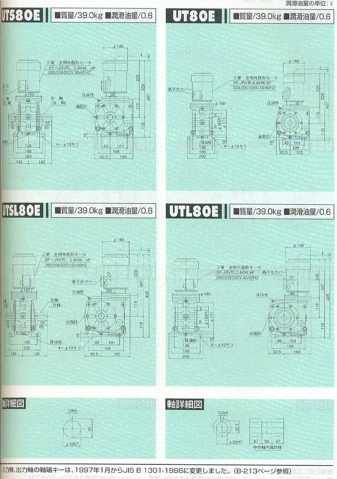 F/U/AF/AOF系列80E(二段式蝸輪減速機)外形尺寸表 2