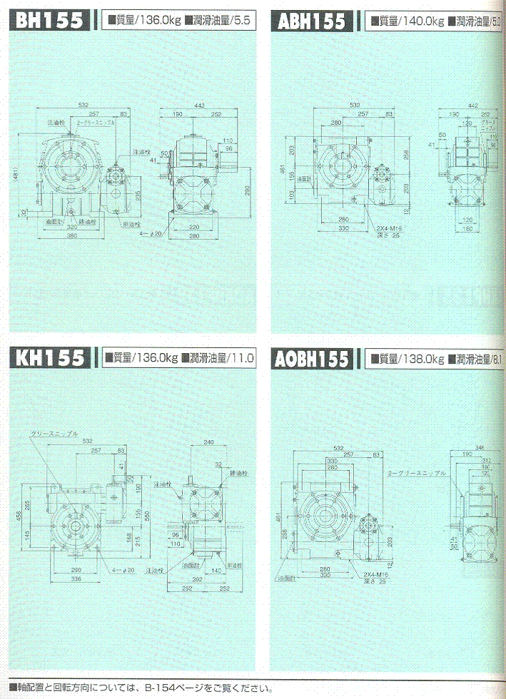 H系列155(二段式蝸輪減速機(jī))外形尺寸表 1