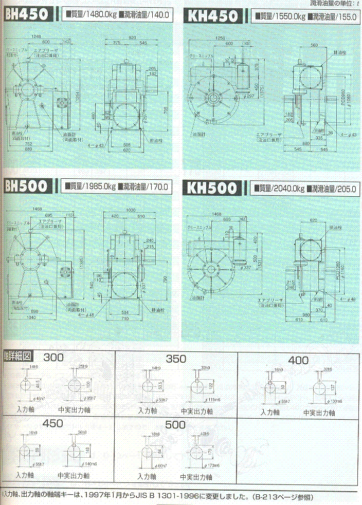 H系列450,500(二段式蝸輪減速機(jī))外形尺寸表