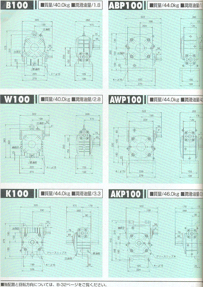 S/A/AO系列100(一段式蝸輪減速機(jī))外形尺寸表 1