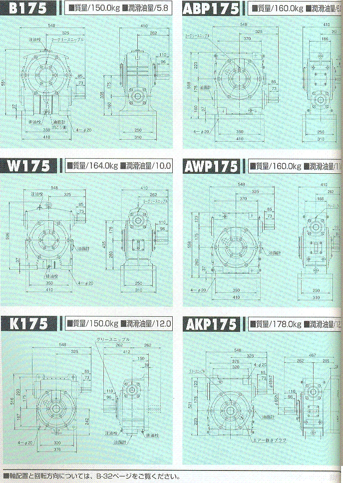 S/A/AO系列175(一段式蝸輪減速機)外形尺寸表 1