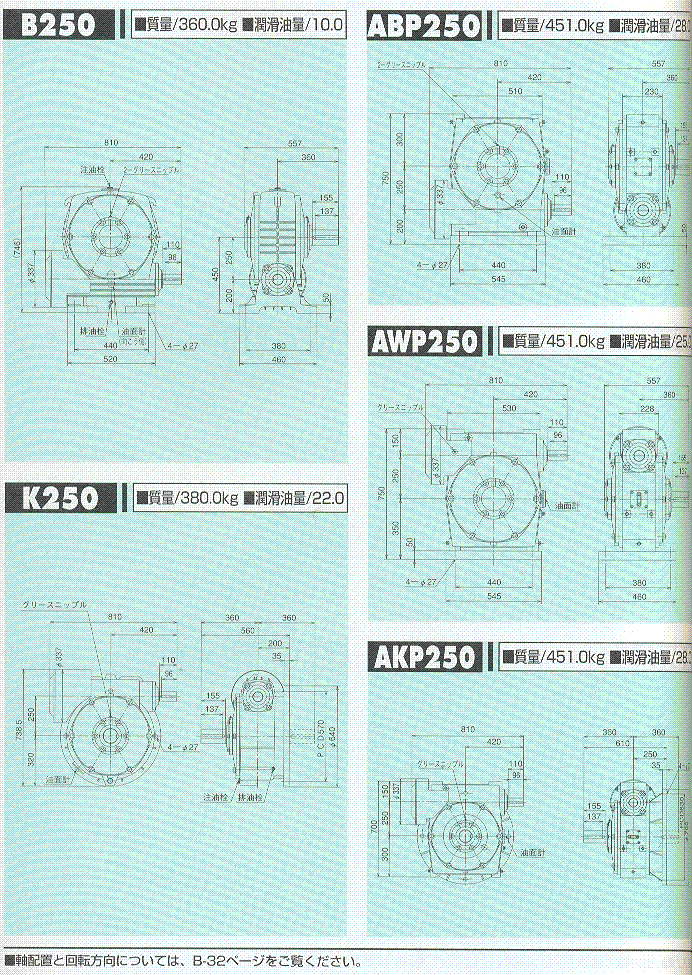 S/A/AO系列250(一段式蝸輪減速機(jī))外形尺寸表 1