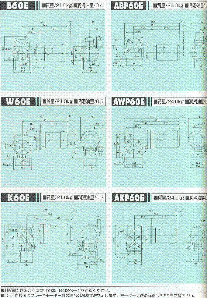 S/A/AO系列60E(一段式蝸輪減速機)外形尺寸表 1