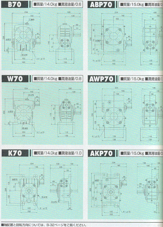 S/A/AO系列70(一段式蝸輪減速機(jī))外形尺寸表 1
