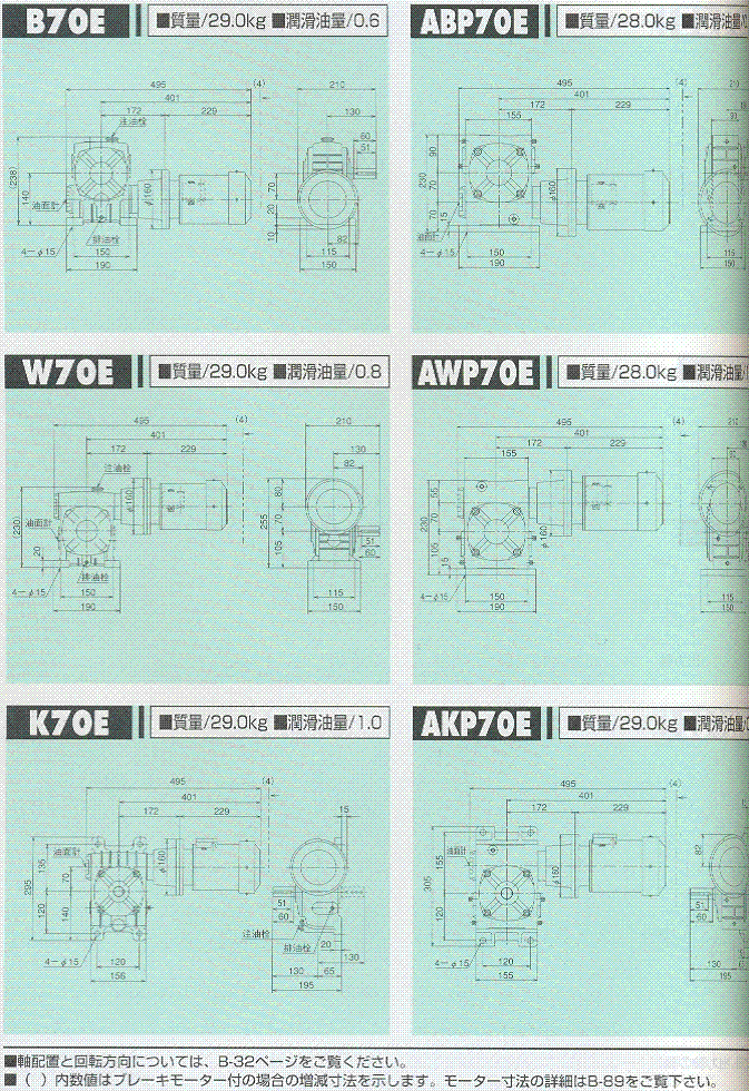 S/A/AO系列70E(一段式蝸輪減速機)外形尺寸表 1