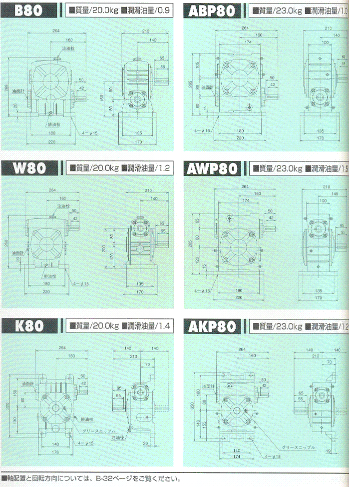 S/A/AO系列80(一段式蝸輪減速機)外形尺寸表 1