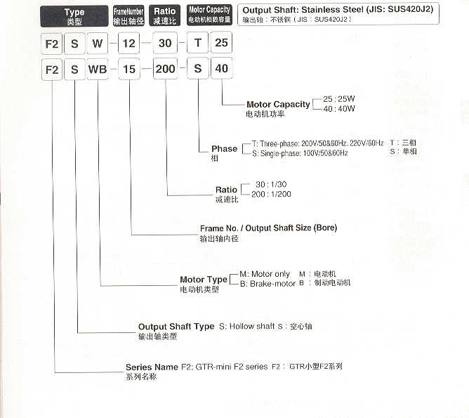 直交同心空心軸 F2SW系列 型號(hào)表示