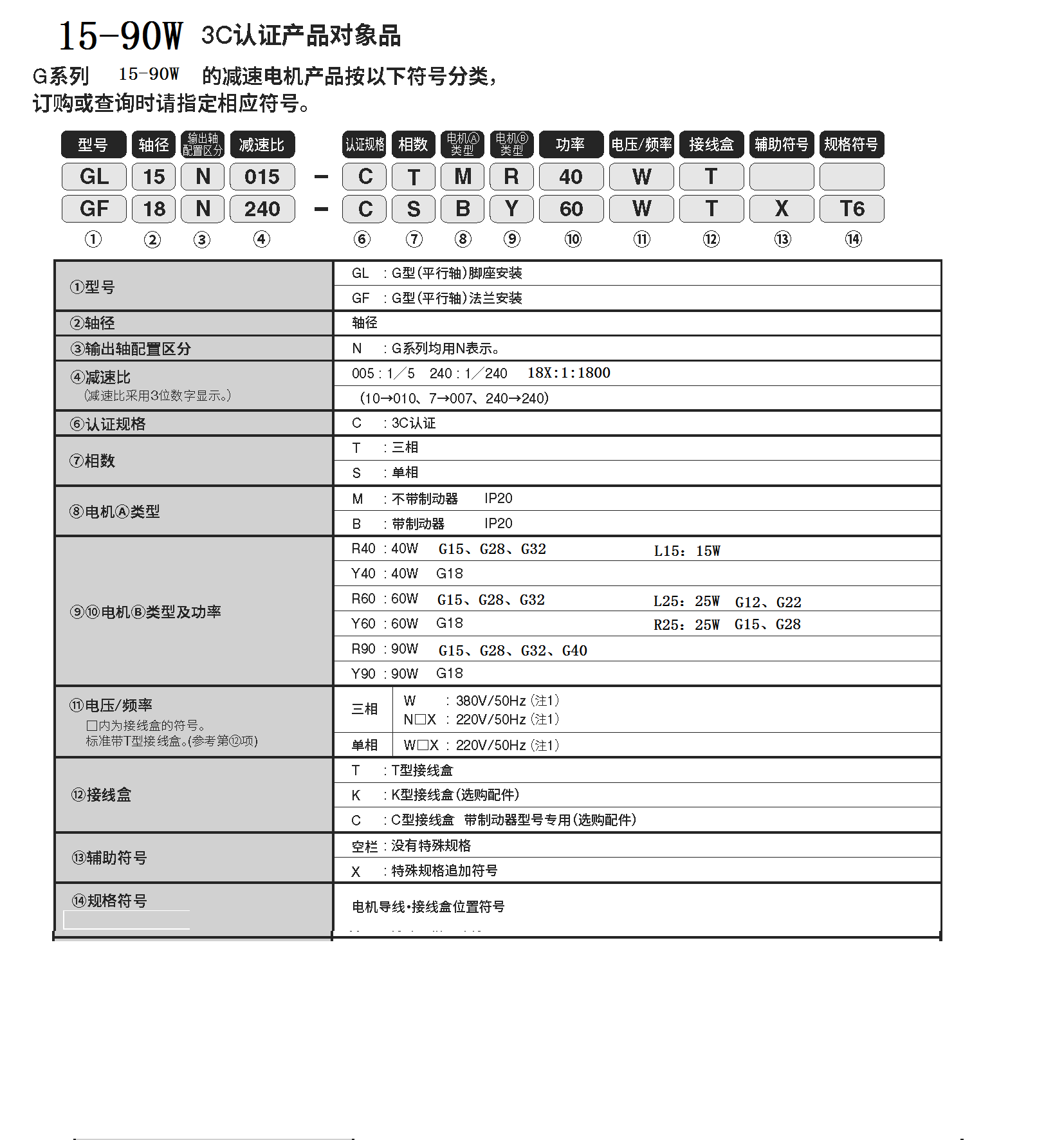 平行軸 G系列 型號表示