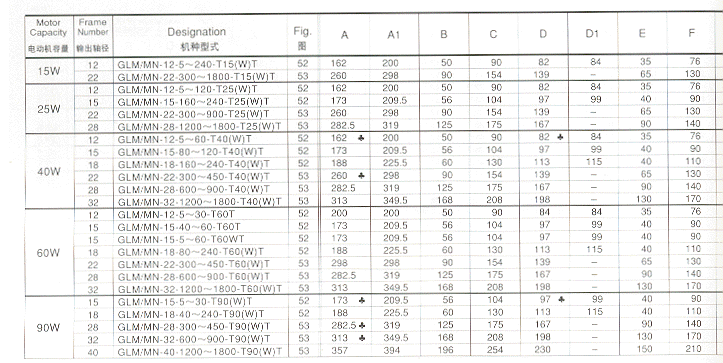 2.以上圖表說明了帶T型接線盒的齒輪減速機的規(guī)格