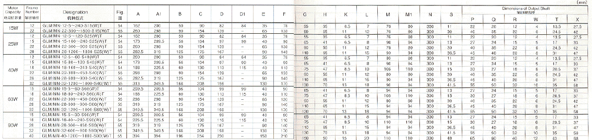 2.以上圖表說明了帶T型接線盒的齒輪減速機的規(guī)格