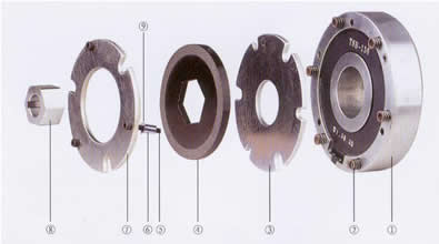 TSB電磁制動(dòng)器在電源輸入時(shí),線圈通電同時(shí)制動(dòng)器的銜鐵盤(pán)克服彈簧壓力被吸向磁極