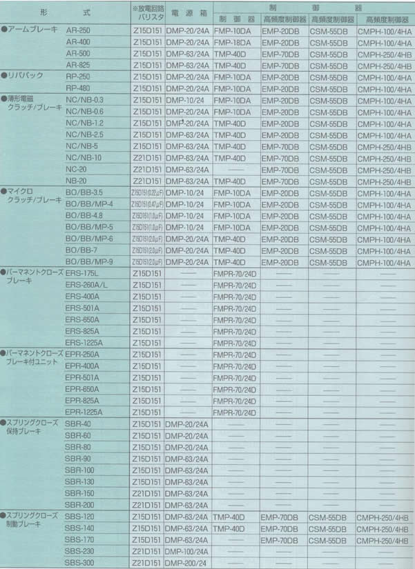 電磁離合sinfonia_shinko_神鋼電機(jī)制動(dòng)器型號(hào)—電源箱—控制器匹配表 表1 表2 表3