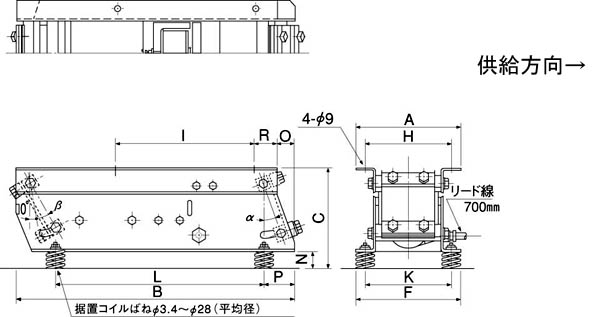 形式 板ばね取付け角度 定格電圧(V) 定格電流(A) 振動(dòng)數(shù)(Hz) 質(zhì)量(kg) 標(biāo)準(zhǔn)適用