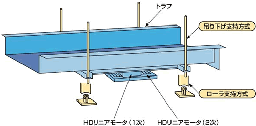 HDC•HDCG•ACC/BM•MVCB/HRC振動輸送機(jī)對比圖 基本構(gòu)造 比較項(xiàng)目 橡膠彈簧輸送機(jī) BM輸送機(jī) MVCB輸送機(jī) HRC輸送機(jī) HDC/HDCG ACC 振動波形 直線 クイック スロー 直線 楕円 驅(qū)動方式 強(qiáng)制振動 ACサーボモータ (強(qiáng)制振動) 偏心シャフト (共振) アンバランスウェイト (共振) 振幅 60mm 30~40mm 10~18mm 7mm 振動數(shù) 130cpm 120cpm 500~600cpm 900cpm 搬送速度 10m/分 約5m/分 約12m/分 約14m/分 トラフ加速度 。ù怪奔铀俣龋 約1.5G (≒0G) 約2.7G (1.9G) 約5.0G (1.7G)