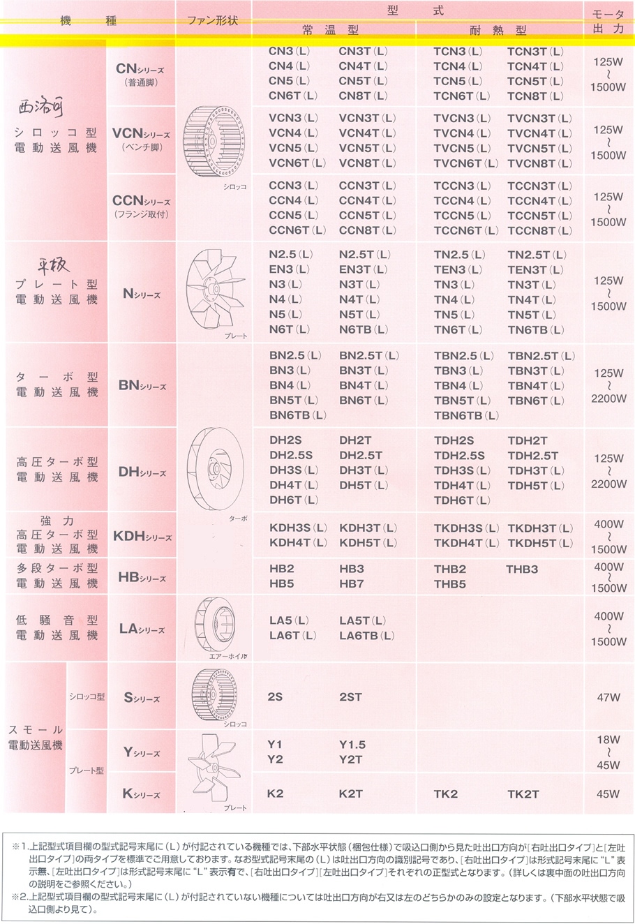 淀川電動(dòng)送風(fēng)機(jī)型號一覽表
